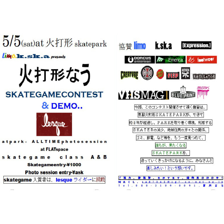 5/5 LIMO,K.S.K.A presents SKATE GAME &DEMO@火打形SKATE