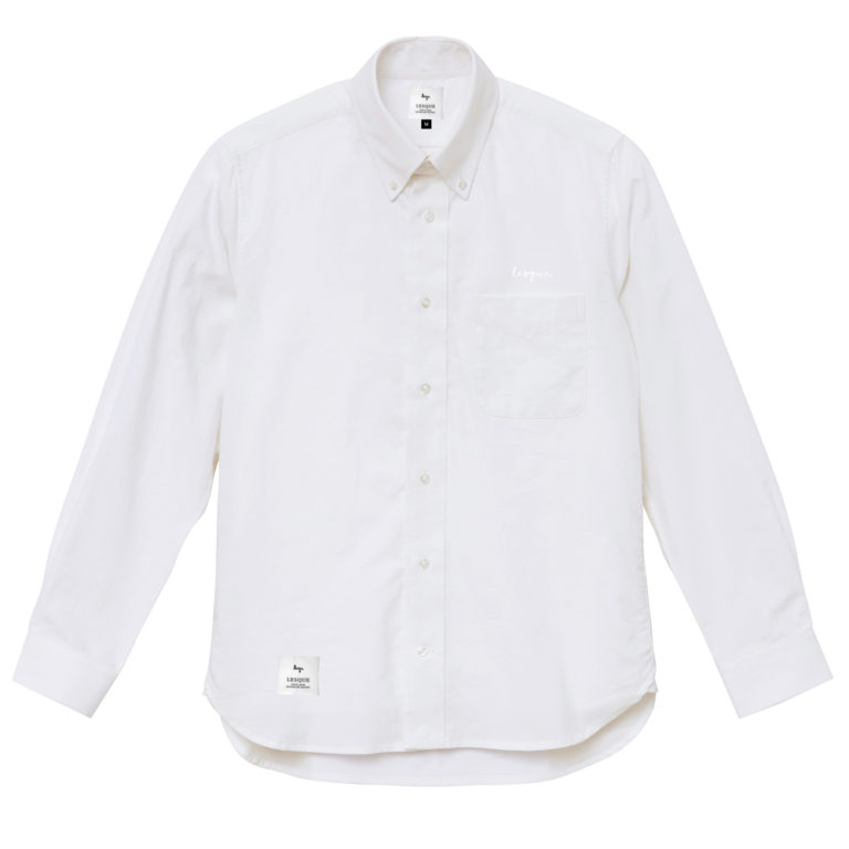 白の刺繍で表現した白シャツが清潔感を引き立ててくれるシンプルなOXシャツ 正面左下には織りネー...